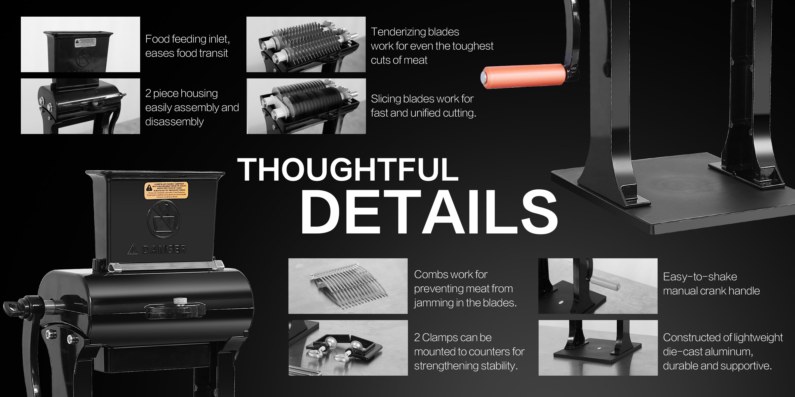 2-in-1 Meat Tenderizer & Slicer, 2 Set of Blades, Countertop-Friendly Size