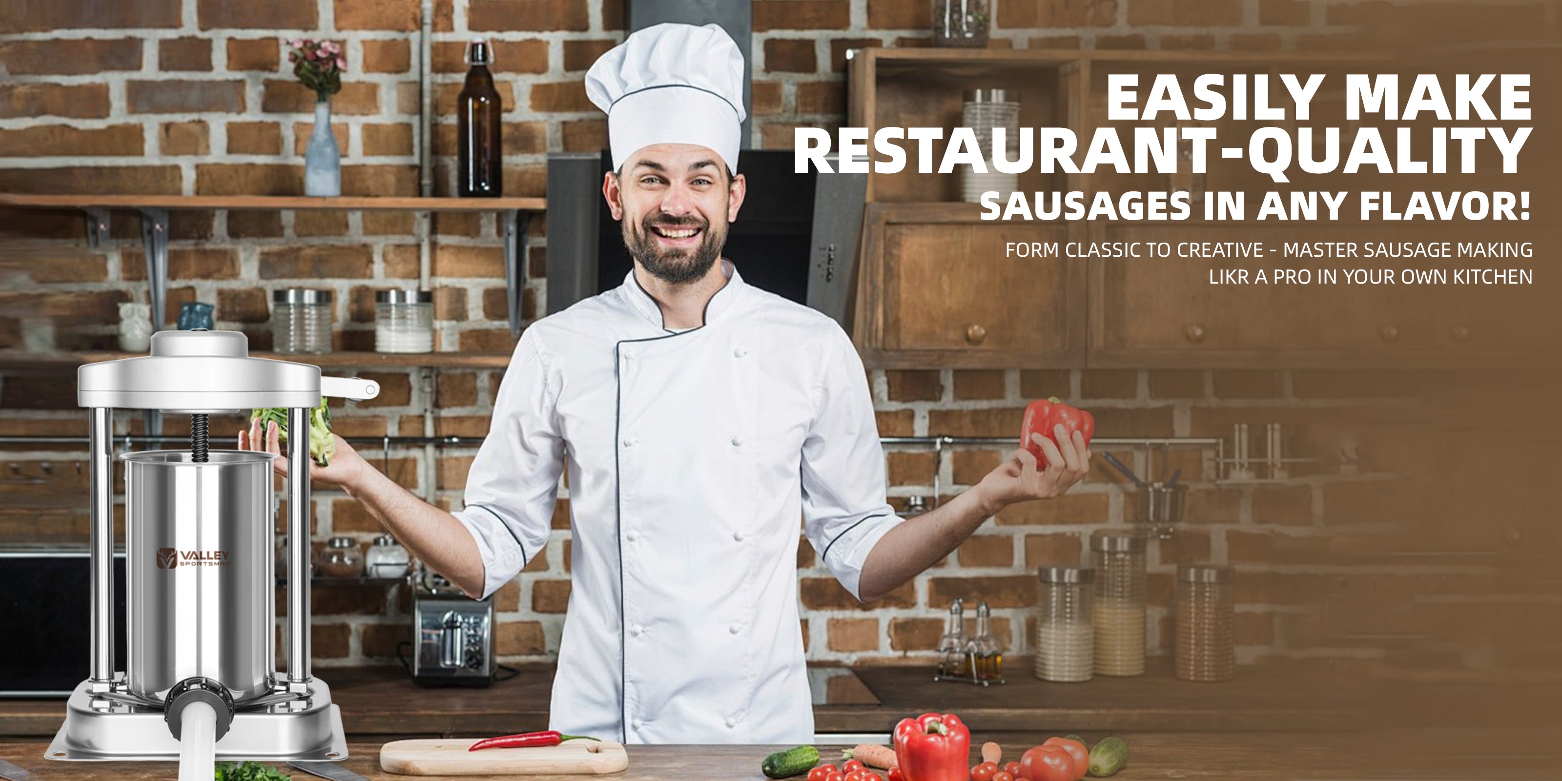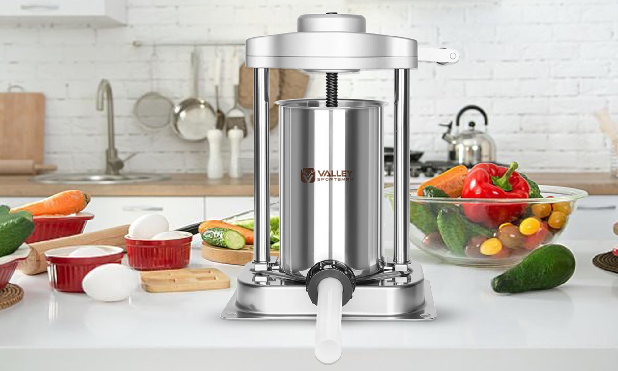 Durable 2L sausage stuffer with stainless steel build, 3 tube sizes, air-release valve, and hassle-free cleaning.