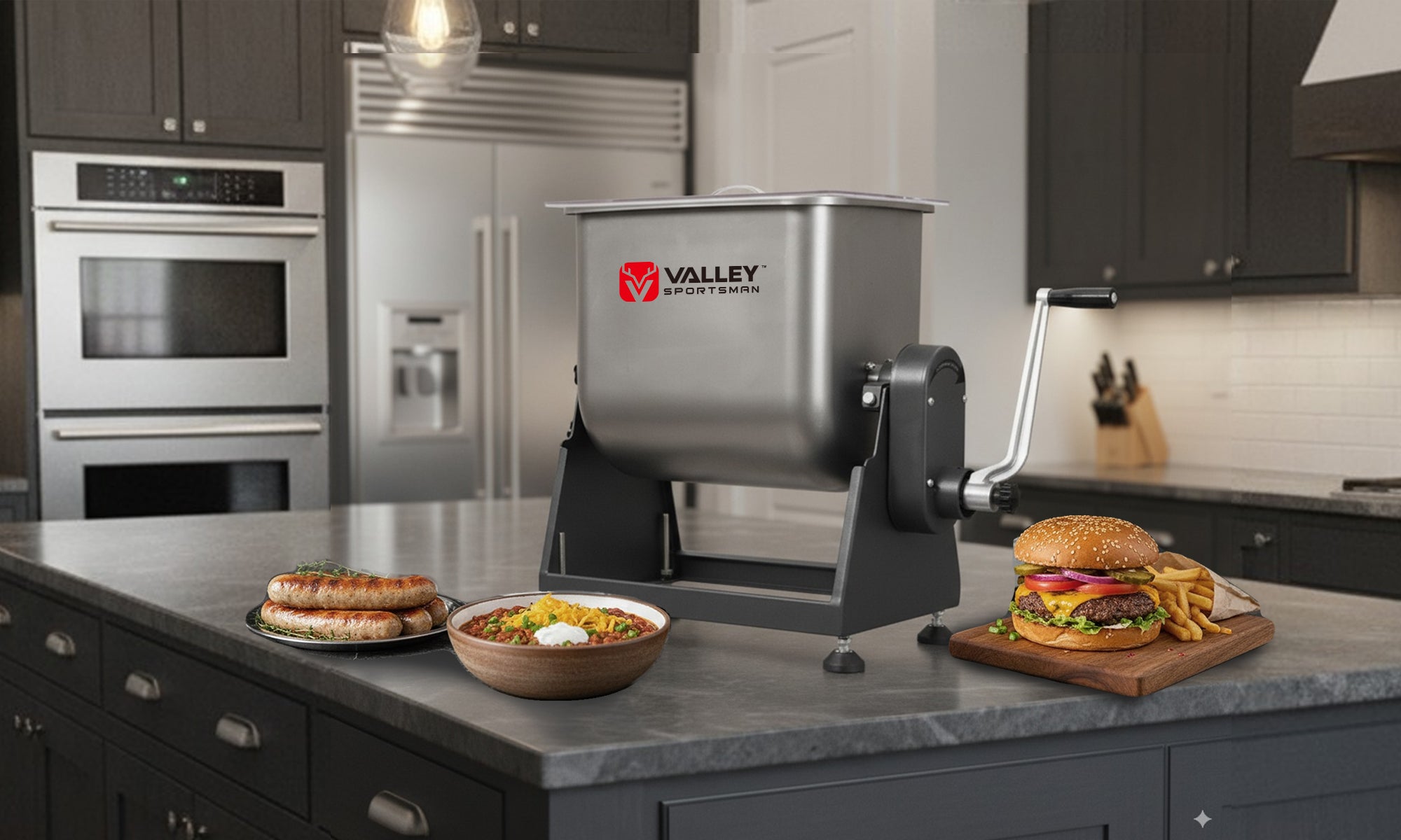 Heavy-duty 50 lb tilting meat mixer with powerful gears, adjustable safety features, and seamless cleaning—built for effortless, professional-grade mixing at home or in commercial kitchens.