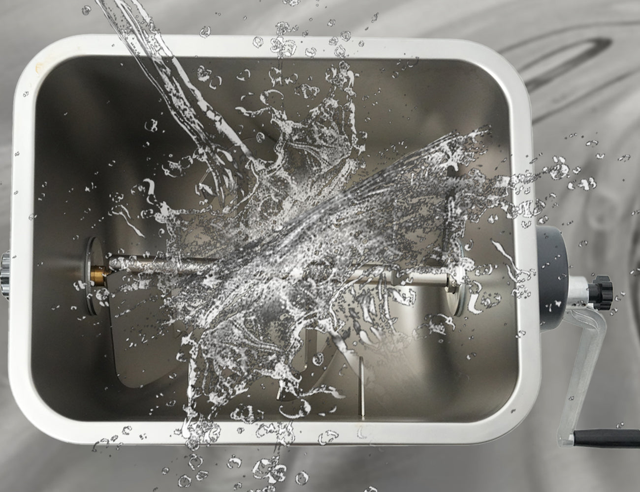 50 lbs tilting meat mixer with a powerful 350W motor, adjustable stability, and seamless design for efficient, safe, and hygienic mixing.
