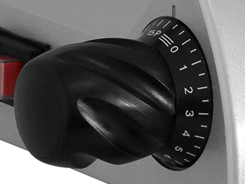 Durable 8’’ slicer with adjustable thickness, powerful motor, and compact design for precise, safe cuts.